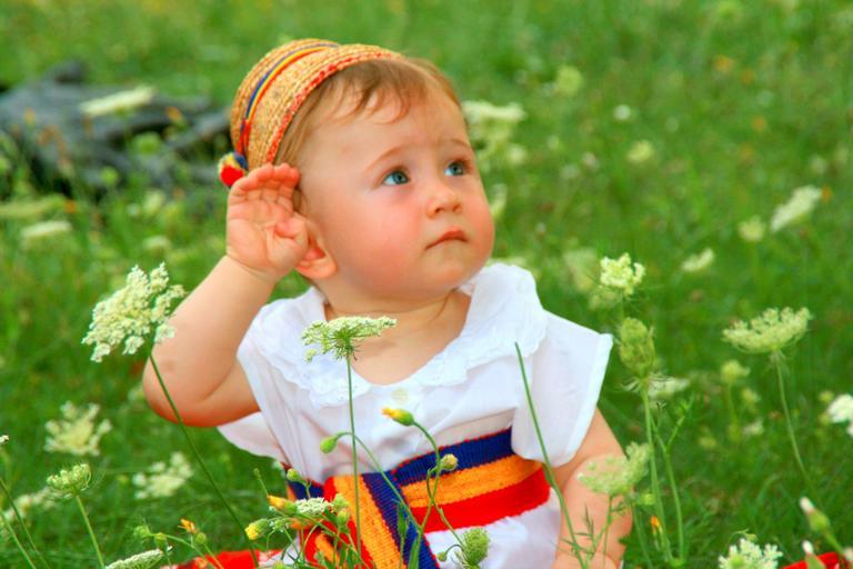 Keywords: toddler traditional costume flowers grass green