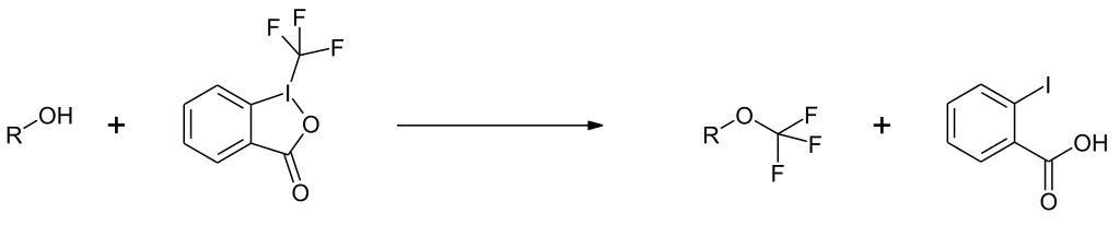 Keywords: Togni s reagent II reaction 02.svg en Reaction of Togni's reagent with alcoholes de Reaktion von Togni's reagenz mit Alkoholen own Steffen 962 2014-01-14 PD-chem Togni's reagent II Cc-zero