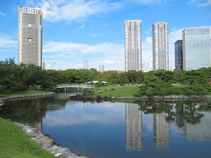 MAKE A MEME View Large Image tokyo japan skyscrapers buildings architecture sky clouds city cities river waterway reflections trees grass outside summer spring