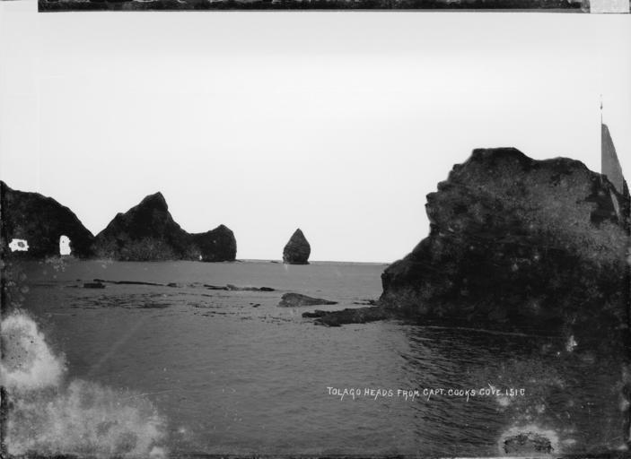 Keywords: blackandwhite monochrome outdoor black and white View of Tolaga Heads from Captain Cook's Cove, Gisborne. Shows rugged rock formations known as "The Haystacks" at the entrance to the harbour. Photograph taken between 1906 and 1912, by William Archer Price. Inscriptions: Inscribed - Photographer's title on negative -bottom right: Tolago Heads from Capt. Cooks Cove. 151C. Quantity: 1 b&w original negative(s). Physical Description: Dry plate glass negative Tolaga Heads from Captain Cook's Cove. Price, William Archer, 1866-1948 :Collection of post card negatives. Ref: 1/2-001230-G. Alexander Turnbull Library, Wellington, New Zealand. natlib.govt.nz/records/22778993 View of Tolaga Heads from Captain Cook's Cove, Gisborne. Shows rugged rock formations known as "The Haystacks" at the entrance to the harbour. Photograph taken between 1906 and 1912, by William Archer Price. Inscriptions: Inscribed - Photographer's title on negative -bottom right: Tolago Heads from Capt. Cooks Cove. 151C. Quantity: 1 b&w original negative(s). Physical Description: Dry plate glass negative Tolaga Heads from Captain Cook's Cove. Price, William Archer, 1866-1948 :Collection of post card negatives. Ref: 1/2-001230-G. Alexander Turnbull Library, Wellington, New Zealand. natlib.govt.nz/records/22778993 |