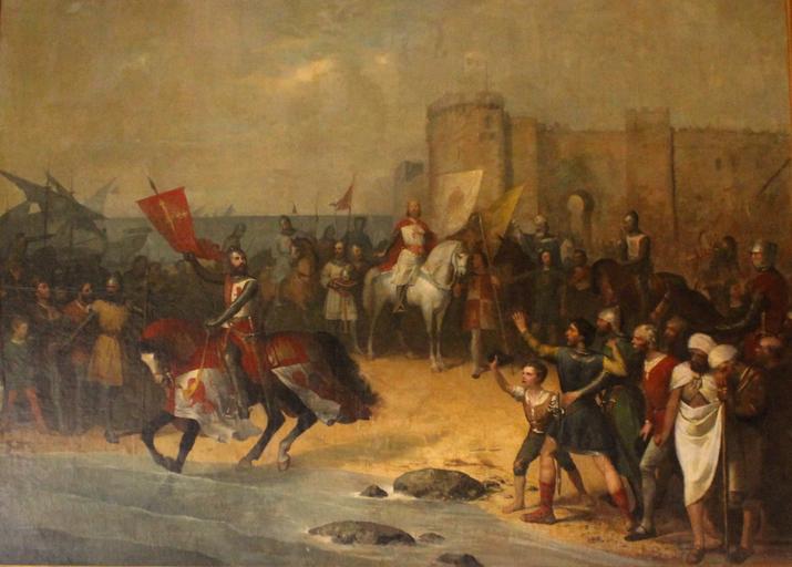 Keywords: Toma de posesión de las aguas de Cádiz por Alfonso X de Castilla (Alcázar de Segovia).jpg Esta obra conocida también como Santa Cruz sobre las aguas representa al rey Alfonso X de Castilla 1221-1284 tomando posesión de las aguas de la ciudad de Cádiz que fue conquistada a los musulmanes por las tropas castellanas en 1264 1865 oil on canvas Size cm 300 250 Institution Alcázar of Segovia https //www museodelprado es/coleccion/obra-de-arte/santa-cruz-sobre-las-aguas-boceto/00384038-e880-4256-bbb5-8979348530c6 searchid ec69147b-1b58-95b9-29ae-dc18a07bfa3d object history exhibition history credit line accession number own PD-old-100 Alfonso X of Castile in paintings Paintings in the Alcázar of Segovia Cádiz in art Ricardo Balaca |