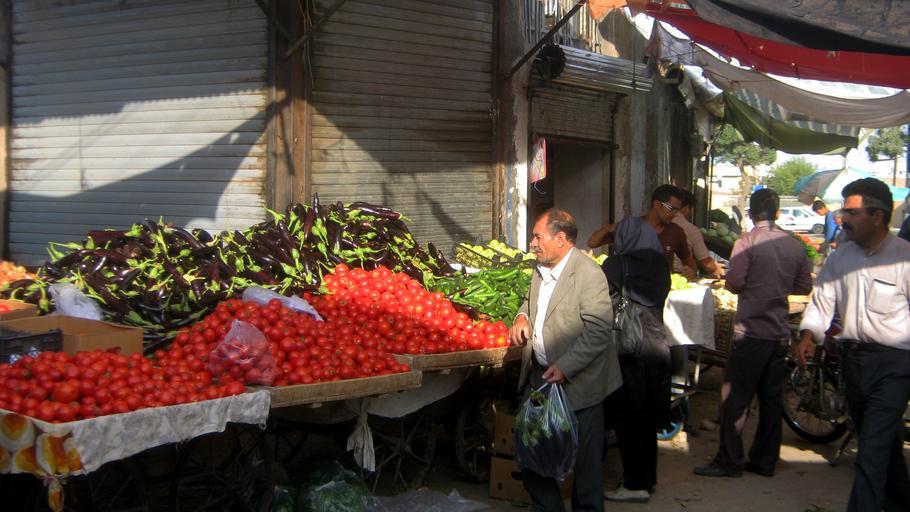 Keywords: Tomato and eggplant (Brinjal) - Firut vendor in Cotton-beating Bazaar of Nishapur at morning 02.JPG en Tomato and eggplant Brinjal - Firut vendor in Cotton-beating Bazaar of Nishapur at morning 2013-06-24 08 08 24 own Sonia Sevilla cc-zero Uploaded with UploadWizard People of Nishapur Fruits in Nishapur Bazaars and shops in Nishapur Solanum lycopersicum |