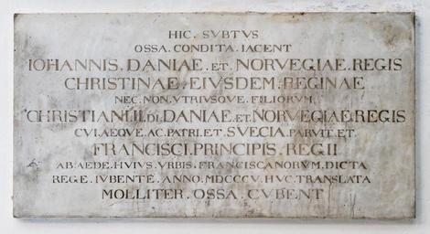 | Keywords: Tomb plaque kings John I and Christian II Danemark Sankt Knut cathedral Denmark.jpg Jean Ier de Danemark de son épouse Christine de Saxe 1461-1521 et de leurs fils Christian II de Danemark et Francis Cette plaque a été dressée dans la cathédrale Saint-Canut d'Odense Danemark lors de la translation des restes de ces souverains dans cette église en 1805 à la destruction du couvent franciscain qui les abritait jusqu'alors John King of Denmark of his wife spouse Christina of Saxony and of their sons king Christian II of Denmark and prince Francis of Denmark in saint-Knud cathedral of Odense Denmark 2016-02-24 11 44 23 own Jebulon other versions 55 395426 10 389366 cc-zero John of Denmark 1518-1532 Christina of Saxony Queen of Denmark Christian II of Denmark Interior of Sankt Knuds Kirke Odense Kommune Plaques in Denmark Plaques referencing 1805 Quality images by Jebulon Taken with Sony ILCE-7 Quality images of Odense Valued images by Jebulon Valued images of Odense Quality images of plaques QualityImage John of Denmark 1518-1532 and family funerary plaque 18 29 12 April 2016 UTC Tomb plaque kings John I and Christian II Danemark Sankt Knut cathedral Denmark jpg Taken with Sony FE 24-240mm F3 5-6 3 OSS |