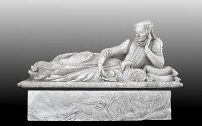 | Keywords: Tombeau Valentine Balbiani details Pilon LP397 MR1643.png Assessments 1 48 862061 2 335775 Artwork Creator Germain Pilon fr Tombeau de Valentine Balbiani 1518-1572 René de Birague Un bas-relief représentant son cadavre Annothomie et un gisant la montrant en train de feuilleter un livre avec son chien Two among the remaining elements of the tomb of Valentina Balbiani wife of the French Chancellor René de Birague A bas-relief is carved upon the tomb's base showing her decomposed corpse Annothomia within and atop the tomb is a statute of the reclining lady shown reading a book accompanied by her dog 1574 2012-04-22 for photograph Marble cm 83 191 49 Institution Louvre fr Aile Richelieu rez-de-chaussée Pilon salle 15a Département des Sculptures en Richelieu wing ground floor Pilon room 15a Sculptures department http //cartelfr louvre fr/cartelfr/visite srv car_not_frame idNotice 1879 langue fr Louvre Museum Internet Databank object history couvent Sainte-Catherine-du-Val-des-Écoliers à Paris détruite en 1783 il ne reste de l'ensemble du monument que les deux éléments montrés ici et quelques pièces accessoires armoiries angelots en Executed for the Birague chapel in the Sainte-Catherine-du-Val-des-Ecoliers church in Paris destroyed in 1783 from the whole monument only the two pieces here remain and some accessory elements coats of arms angels exhibition history fr Statue accoudée Versailles 1851 Bas relief Musée des Monuments français entrée en 1823 en Lying statue from Versailles 1851 Relief Musée des Monuments français in the Louvre museum since 1823 credit line fr Deux contrats entre René de Birague et Germain Pilon des 29 avril 1573 et 7 avril 1574 en Two contracts between René de Birague Germain Pilon 1573 april 29 and 1574 april 7 accession number statue L P 397; relief M R 1643 own Jebulon cc-zero Germain Pilon French sculptures in the Louvre - Room 15a René de Birague 1570s fashion 16th-century recumbent effigies of women 16th-century sculptures in France 16th-century sculptures of women Cushions in art Death in art Featured pictures of the Louvre Females with dogs in art Quality images by Jebulon Quality images of the Louvre Reliefs of death Statues of recumbent women Uploaded with UploadWizard Women with books in art Dogs in art Featured pictures by Jebulon QualityImage |