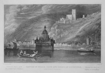 Keywords: Tombleson Kaub.jpg Steel engraving from Views of the Rhine by William Tombleson around 1840 Castle Pfalzgrafenstein located in the middle of the Rhine and Castle Gutenfels above the village of Kaub on the oppoite bank scan by User Manfred Heyde ca 1840 Creator William Tombleson PD-old-100 Steel engravings Burg Gutenfels Kaub Engravings of castles in Rhineland-Palatinate Historic views of Burg Pfalzgrafenstein William Tombleson |