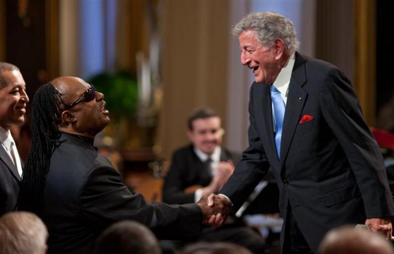 Keywords: Tony Bennett meets Stevie Wonder.jpg Tony Bennett meeting Stevie Wonder at the White House http //www whitehouse gov/assets/slideshows/896x504/P022509PS-05981 jpg 2009-02-25 Pete Souza official White House photographer PD-USGov Tony Bennett Stevie Wonder |