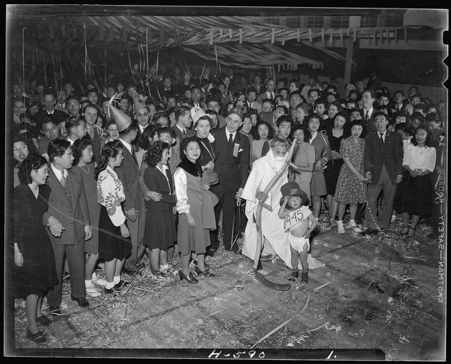 | Keywords: Topaz, Utah. Evacuees celebrate New Year's Eve. Japanese Americans at Central Utah Relocation Cent . . . - NARA - 539711.tif Scope and content The full caption for this photograph reads Topaz Utah Evacuees celebrate New Year's Eve Japanese Americans at Central Utah Relocation Center celebrated reopening of the west coast with a big New Year's Eve party Joseph Aoki portrays Father Time and his son Tommy Baby New Year General notes 539711 Local identifier 210-G-H590 Department of the Interior War Relocation Authority 02/16/1944 - 06/30/1946 NARA-Author Mace Charles E photographer Photographer 8464453 <br /> Still Picture Records Section Special Media Archives Services Division NWCS-S National Archives at College Park 8601 Adelphi Road College Park MD 20740-6001 1944-12-31 Record group Record Group 210 Records of the War Relocation Authority 1941 - 1989 Record group ARC 537 Central Photographic File of the War Relocation Authority compiled 1942 - 1945 Series ARC 536000 File unit File unit ARC Variant control numbers NAIL Control Number NWDNS-210-G-H590 yes Other versions <gallery> File Topaz _Utah _Evacuees_celebrate_New_Year's_Eve _Japanese_Americans_at_Central_Utah_Relocation_Cent_ _ _ _-_NARA_-_539711 tif tif File Topaz _Utah _Evacuees_celebrate_New_Year's_Eve _Japanese_Americans_at_Central_Utah_Relocation_Cent_ _ _ _-_NARA_-_539711 jpg jpg </gallery> NARA-cooperation PD-USGov Topaz War Relocation Center NARA TIF images with categorized JPGs |