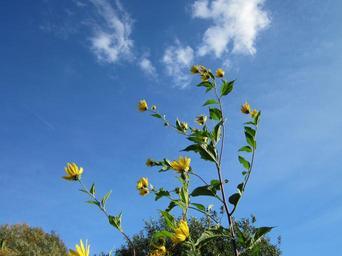 Keywords: topinambus sky clouds flowers plant greenery flora herbage bloom blossom floret stem beautiful colorful nature outside outdoors spring summer lovely pretty plants macro close-up