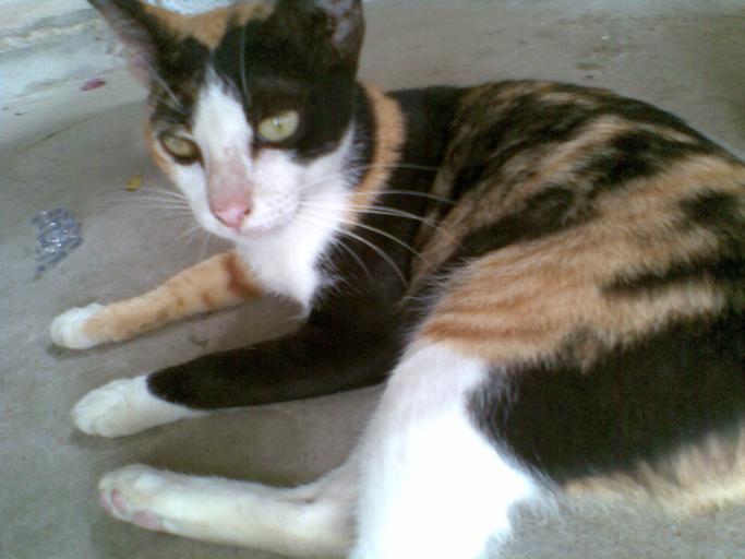 Keywords: Torbie.jpg en A tortoiseshell cat found at Hua Hin th แมวสามสีพบที่หัวหิน own User Octahedron80 2011-01-05 Cc-zero Black tortoiseshell and white cats Cats of Thailand Low quality images of cats
