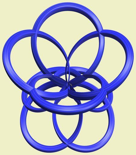 | Keywords: mathematica 3d cg parametricplot3d texture torus code program algorithm プログラム コード アルゴリズム 輪環 りんかん ドーナツ どーなつ lissajous リサージュ geometric sculpture geometricsculpture shape geometry sculpture mapping テクスチャ マッピング 模様 もよう design pattern デザイン パターン graphic グラフィック グラフィクス structure 意匠 構造 symmetry 対称性 たいしょうせい シンメトリー 対称 たいしょう circle round tire rim indoor a = 0; (* center hole size of a torus *) b1 = 4;(* number of cross *) b2 = 5;(* number of cross *) c = 0; (* distance from the center of rotation *) d = 1; (* number of torus *) w = 16; (* gap width *) SetOptions[ParametricPlot3D, PlotRange -> Full, Mesh -> None, Boxed -> False, Axes -> None, PlotPoints -> 800, ImageSize -> 2400, Background ->RGBColor[{240, 240, 200}/255], PlotStyle -> Directive[Specularity[White, 90], Texture[Import["D:/tmp/713.jpg"]]], TextureCoordinateFunction -> ({#4, #5/Pi} &), Lighting -> "Neutral"]; f[v_] := Sin[2 Sin[Sin[Sin[v]]]]; x = (a - Cos[t] + w Sin[b1 s]) Cos[b2 s] + c; y = (a - Cos[t] + w Sin[b1 s]) Sin[b2 s] + c; z = w Sin[b1 s] + f[t] + c; rm = Table[{x, y, z}.RotationMatrix[2 i Pi/d, {0, 1, 2}], {i, d}]; ParametricPlot3D[rm, {t, 0, 2 Pi}, {s, 0, 2 Pi}] (*--- The Texture *) 上と下で位相がずれている a = 0; (* center hole size of a torus *) b1 = 4;(* number of cross *) b2 = 5;(* number of cross *) c = 0; (* distance from the center of rotation *) d = 1; (* number of torus *) w = 16; (* gap width *) SetOptions[ParametricPlot3D, PlotRange -> Full, Mesh -> None, Boxed -> False, Axes -> None, PlotPoints -> 800, ImageSize -> 2400, Background ->RGBColor[{240, 240, 200}/255], PlotStyle -> Directive[Specularity[White, 90], Texture[Import["D:/tmp/713.jpg"]]], TextureCoordinateFunction -> ({#4, #5/Pi} &), Lighting -> "Neutral"]; f[v_] := Sin[2 Sin[Sin[Sin[v]]]]; x = (a - Cos[t] + w Sin[b1 s]) Cos[b2 s] + c; y = (a - Cos[t] + w Sin[b1 s]) Sin[b2 s] + c; z = w Sin[b1 s] + f[t] + c; rm = Table[{x, y, z}.RotationMatrix[2 i Pi/d, {0, 1, 2}], {i, d}]; ParametricPlot3D[rm, {t, 0, 2 Pi}, {s, 0, 2 Pi}] (*--- The Texture *) 上と下で位相がずれている |