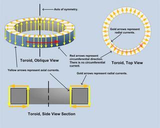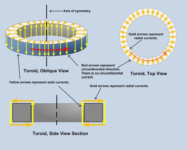 Keywords: Toroidal Inductor-with Fully Confined Magnetic B Field, Three View.JPG Toroidal inductor with fully confined magnetic field svg A toroid shaped inductor of rectangular cross section illustrating the requirements for total confinement of the magnetic B field own Constant314 2010-10-13 Toroidal transformers Electromagnetics |
