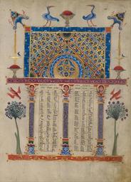 Keywords: T'oros Roslin (Armenian, active 1256 - 1268) - Canon Table Page - Google Art Project.jpg 1256 1268 active 1256 - 1268 4191051 T'oros Roslin Armenian Armenian 1256 - 1268 /collection/the-j-paul-getty-museum/artwork/canon-table-page-toros-roslin-armenian-active-1256-1268/6877813/ T'oros Roslin Armenian active 1256 - 1268 illuminator /artist/toros-roslin/4485067/ 4485067 /collection/the-j-paul-getty-museum/ The J Paul Getty Museum 343005 http //www getty edu/museum 3/13/2012 12 00 05 AM /collection/the-j-paul-getty-museum/artwork/canon-table-page-toros-roslin-armenian-active-1256-1268/6877813/ 1256 1256 Birds Tempera and gold paint on parchment 265 6877813 True 1256 3/25/2012 2 53 37 PM lido getty edu-gm-obj112316 http //www getty edu/art/gettyguide/artObjectDetails artobj 112316 http //www getty edu/legal/copyright html Folio 1250 1260 Hromklay Armenia Creation w190 x h265 cm 1256 False 0 716796875 Part canon-table-page-toros-roslin-armenian-active-1256-1268 Canon Table Page c 190 Tempera and gold paint on parchment Birds http //www getty edu/legal/copyright html special url_id zwELsEUnIhvrsw PD-old-100-1923 1268 Google Art Project works by T'oros Roslin 1256 works MS 59 Getty museum - Leaves from Zeytun Gospels Canon tables |
