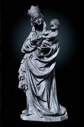 | Keywords: Toruń Beautiful Madonna.JPG Madonna and Child Madonna z Dzieciątkiem Limestone 115 cm 45 28 in Catalogue of stolen and missing cultural achievements / comp Jan Świeczyński; Ośrodek Informacyjno-Koordynacyjny Ochrony Obiektów Muzealnych Warsaw 1988 Editor Wojciech Jaskulski Piotr Ogrodzki See also http //www mkidn gov pl/kolekcje/ Department of National Heritage Wartime losses an official webpage of Polish Ministry of Culture Art and National Heritage Owned by the Cathedral Basilica of St John the Baptist and St John the Evangelist in Toruń lost 1944 This type of figure with a specific expression is known as a Beautiful Madonna an example of the south-eastern variant of the International Gothic style in its most delicate form ca 1395 ; photo made before 1939 Master of Beautiful Madonnas; author of photo unknown PD-Polish Anonymous-EU Sculptures lost in Poland during World War II Interior of Cathedral of St John the Baptist and St John the Evangelist in Toruń Gothic statues of Madonna and Child in Poland 1390s statues of Madonna and Child Art in Kuyavian-Pomeranian Voivodeship Black and white photographs of sculptures |