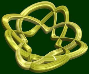 | Keywords: mathematica 3d cg parametricplot3d texture torus code program algorithm プログラム コード アルゴリズム 輪環 りんかん ドーナツ どーなつ lissajous リサージュ geometric sculpture geometricsculpture shape geometry sculpture mapping テクスチャ マッピング 模様 もよう abstract 抽象 ちゅうしょう アブストラクト design pattern デザイン パターン graphic グラフィック グラフィクス structure 意匠 構造 symmetry 対称性 たいしょうせい シンメトリー 対称 たいしょう black background indoor tangle bright a = 8;(*center hole size of a torus*) b1 = 8;(*number of cross*) b2 = 3;(*number of cross*) c = 0;(*distance from the center of rotation*) d = 1;(*number of torus*) w = 3;(*gap width*) SetOptions[ParametricPlot3D, PlotRange -> Full, Mesh -> None, Boxed -> False, Axes -> None, PlotPoints -> 400, ImageSize -> 3000, Background -> Darker[Green, 0.8], PlotStyle -> Directive[Specularity[White, 90], Texture[Import["D:/tmp/71.jpg"]]], TextureCoordinateFunction -> ({#4 + #5, #5/Pi} &), Lighting -> "Neutral"]; f[v_] := Sin[2 Sin[Sin[Sin[v]]]]; x = (a - Cos[t] + w Sin[b1 s]) Cos[b2 s] + c; y = (a - Cos[t] + w Sin[b1 s]) f[b2 s] + c; z = w Sin[b1 s] + f[t] + c; rm = Table[{x, y, z}.RotationMatrix[2 i Pi/d, {0, 0, 1}], {i, d}]; ParametricPlot3D[rm, {t, 0, 2 Pi}, {s, 0, 2 Pi}] (*--- The Texture *) a = 8;(*center hole size of a torus*) b1 = 8;(*number of cross*) b2 = 3;(*number of cross*) c = 0;(*distance from the center of rotation*) d = 1;(*number of torus*) w = 3;(*gap width*) SetOptions[ParametricPlot3D, PlotRange -> Full, Mesh -> None, Boxed -> False, Axes -> None, PlotPoints -> 400, ImageSize -> 3000, Background -> Darker[Green, 0.8], PlotStyle -> Directive[Specularity[White, 90], Texture[Import["D:/tmp/71.jpg"]]], TextureCoordinateFunction -> ({#4 + #5, #5/Pi} &), Lighting -> "Neutral"]; f[v_] := Sin[2 Sin[Sin[Sin[v]]]]; x = (a - Cos[t] + w Sin[b1 s]) Cos[b2 s] + c; y = (a - Cos[t] + w Sin[b1 s]) f[b2 s] + c; z = w Sin[b1 s] + f[t] + c; rm = Table[{x, y, z}.RotationMatrix[2 i Pi/d, {0, 0, 1}], {i, d}]; ParametricPlot3D[rm, {t, 0, 2 Pi}, {s, 0, 2 Pi}] (*--- The Texture *) |
