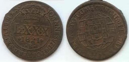 Keywords: Tostao80.jpg pt Tostão Moeda de cobre de 80 LXXX réis cunhada em 1821 pela casa da moeda da Bahia sob reinado de D João VI Moeda nº 493 do Livro das moedas do Brasil série cobre 2012-03-17 own Nerun cc-zero Uploaded with UploadWizard 1821 coins Coins of Brazil |