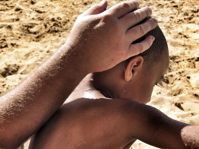 Keywords: touch family love child children hand caress parent togetherness summer beach