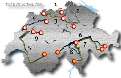 Keywords: Tour de Suisse 2006.jpg Map of the Tour de Suisse 2006 with shown stages not provided but uploaded by author 2006 2006-06-18 Jiří Žemlička Tour de Suisse 2006 Sports maps of Switzerland Language-neutral maps