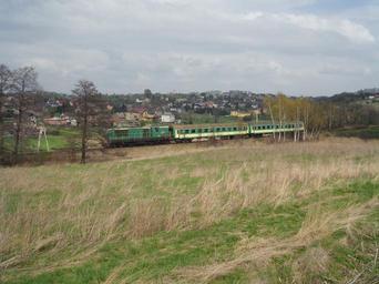 Keywords: Tourist train outside Pszow2.JPG Pszów Poland on route 192 2012-04-21 own Jan Pešula cc-zero Uploaded with UploadWizard Pszów Railway line 192 Poland