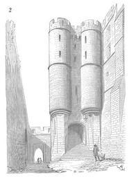 | Keywords: Tournelles.Mont.Saint.Michel.png Drawings by Eugène Viollet-le-Duc Les clôtures d'abbayes de courtils étaient souvent renforcées de tourelles aux angles ou de distance en distance pour poster des guetteurs Quelquefois même ces tourelles avaient deux étages l'un au niveau du chemin de ronde l'autre au-dessus auquel on montait par une échelle Ces sortes de tourelles étaient de véritables échauguettes et les appelait-on ainsi pendant le moyen âge Les deux fuseaux cylindriques qui flanquent la porte de l'abbaye du Mont-Saint-Michel en mer sont bien des <i>tournelles</i> dans l'ancienne acception du mot Voici fig 2 une perspective de ce bel ouvrage bâti en assises de granit rose et gris alternées dans la hauteur du premier étage et qui date de 1260 environ Ces deux tourelles servaient à la fois d'escaliers et de défenses dans leur partie supérieure La porte qu'elles flanquent est précédée d'un châtelet et l'ensemble de la construction est intact Ce ne sont point des combles coniques qui couronnent les deux cylindres mais des plates-formes afin de laisser plus de liberté aux défenseurs Dictionnaire raisonné de l'architecture française du XI<sup>e</sup> au XI<sup>e</sup> siècle ~ 1856 Eugène Viollet le Duc Viollet-le-Duc Le Châtelet Abbey of Mont Saint-Michel Mont Saint-Michel in art |