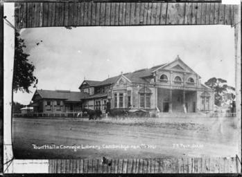 Keywords: cambridge architecture building library frederick george radcliffe frederickgeorgeradcliffe arquitectura new zealand newzealand blackandwhite monochrome outdoor photo border black and white The Town Hall and Carnegie Library at Cambridge, circa 1910s. Photograph taken by Frederick George Radcliffe, with in a different script, a photographer's number added by William Archer Price, which follows the Price sequence of numbers. Inscriptions: Inscribed - Photographer's title on negative -bottom left: Town Hall & Carnegie Library. Cambridge. F.G.R. No. 3241bottom right: J.R. Philp Series. Quantity: 1 b&w original negative(s). Physical Description: Dry plate glass negative 4.5 x 6.5 inches Radcliffe, Frederick George, 1863-1923. Town Hall & Carnegie Library, Cambridge, ca 1910s - Photograph taken by Frederick George Radcliffe. Price, William Archer, 1866-1948 :Collection of post card negatives. Ref: 1/2-001388-G. Alexander Turnbull Library, Wellington, New Zealand. natlib.govt.nz/records/23023419 The Town Hall and Carnegie Library at Cambridge, circa 1910s. Photograph taken by Frederick George Radcliffe, with in a different script, a photographer's number added by William Archer Price, which follows the Price sequence of numbers. Inscriptions: Inscribed - Photographer's title on negative -bottom left: Town Hall & Carnegie Library. Cambridge. F.G.R. No. 3241bottom right: J.R. Philp Series. Quantity: 1 b&w original negative(s). Physical Description: Dry plate glass negative 4.5 x 6.5 inches Radcliffe, Frederick George, 1863-1923. Town Hall & Carnegie Library, Cambridge, ca 1910s - Photograph taken by Frederick George Radcliffe. Price, William Archer, 1866-1948 :Collection of post card negatives. Ref: 1/2-001388-G. Alexander Turnbull Library, Wellington, New Zealand. natlib.govt.nz/records/23023419 |