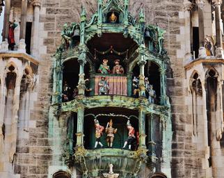 Keywords: town hall glockenspiel schäffler dance munich marienplatz