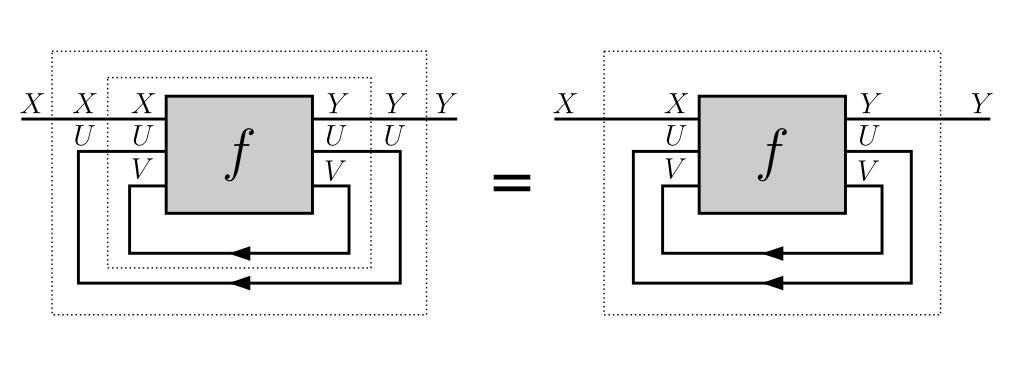 Keywords: Trace diagram associativity.svg en String diagram representing associativity of the trace operator in a traced category fr Diagramme de corde représentant l'associativité de la trace dans une catégorie à trace Own Myself 2010-12-30 Cc-zero Category theory |