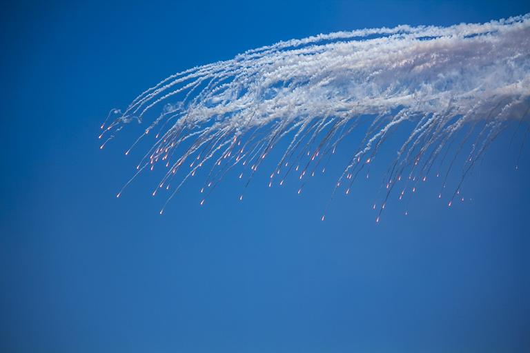 Keywords: trace of missiles shot volley aviation sky blue sky height blue missiles