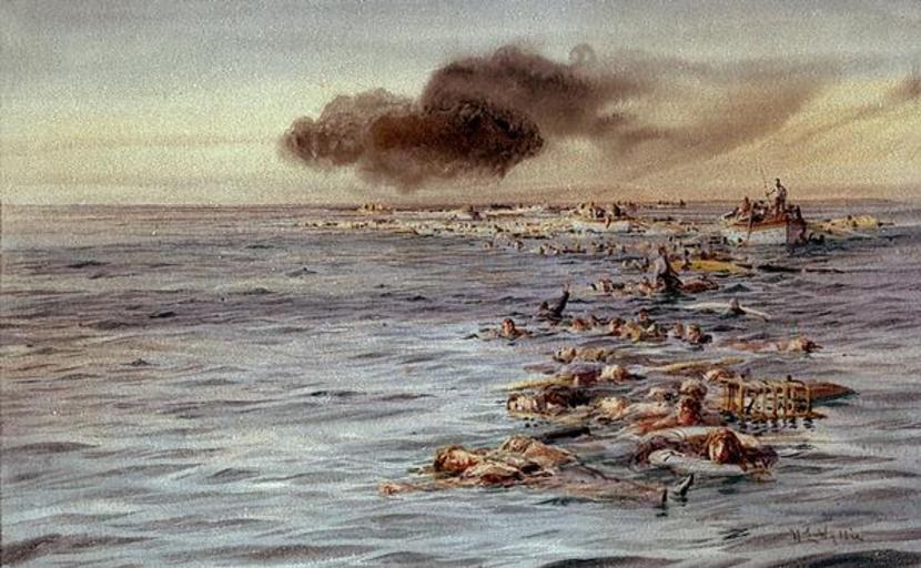 Keywords: Track of Lusitania.jpg en The track of Lusitania View of casualties and survivors in the water and in lifeboats ja 客船 ルシタニア の沈没後の様子 http //www nmm ac uk/searchbin/searchs pl exhibit it0237f axis 1223262115 flash false dev National Maritime Museum Greenwich Creator William Lionel Wyllie 1915-05-07 Public Domain PD-old Lusitania ship 1907 May 1915 William Lionel Wyllie |