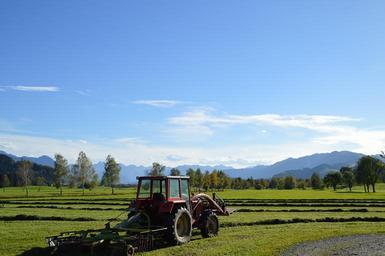 Keywords: tractor agriculture hair dryer alpine sky blue autumn allgäu october