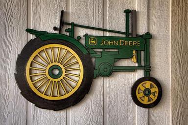 Keywords: tractor artisanry john deere tractor yard art schnitzbild wood
