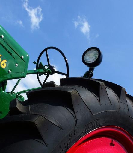 Keywords: tractor farm tire rubber black red green blue steering wheel wheel