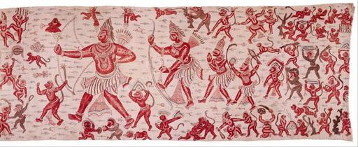 Keywords: Traded to Toraja people, Sulawesi, Indonesia - Ceremonial cloth and sacred heirloom (mawa or ma'a) - Google Art Project (717267).jpg This cloth depicts the final chaotic battle scene from the great Hindu epic the Ramayana In the centre the large figures of the main protagonists ” Rama an incarnation of the god Vishnu and the hero of the tale and the ten-headed demon king Ravana ” confront one another Their embattled soldiers struggle amid flying arrows and severed limbs Rama ™s main supporters ” his brother Lakshmana and Hanuman the leader of the monkey army ” appear behind him on the viewer ™s right Rama wields the celestial bow and arrow with which he eventually defeats Ravana The Ramayana is extremely popular in Southeast Asia with scenes from the Indian epic appearing in many art forms Large narrative cloths such as this were prized in Hindu Bali and also by the animist Toraja people of Sulawesi copied from museum text from Coromandel coast India Sulawesi Indonesia 714375 traded to Toraja people /collection/national-gallery-of-australia-canberra/artwork/ceremonial-cloth-and-sacred-heirloom-mawa-or-maa-traded-to-toraja-people-sulawesi-indonesia/717267/ traded to Toraja people Sulawesi Indonesia /artist/toraja-people-sulawesi-indonesia/4128618/ 4128618 /collection/national-gallery-of-australia-canberra/ National Gallery of Australia Canberra 388004 http //nga gov au/ 1/20/2012 7 05 07 PM /collection/national-gallery-of-australia-canberra/artwork/ceremonial-cloth-and-sacred-heirloom-mawa-or-maa-traded-to-toraja-people-sulawesi-indonesia/717267/ 1700 18th century 1060 717267 True 1799 3/24/2012 9 40 28 AM 155655 http //artsearch nga gov au/Detail cfm IRN 155655 http //nga gov au/Collection/Copyright cfm National Gallery of Australia Gift of Michael and Mary Abbott 1991 Textile handspun cotton natural dyes mordants 1700 1800 Coromandel Coast India w4870 x h1060 cm 18th century False 2 43809523809524 Object ceremonial-cloth-and-sacred-heirloom-mawa-or-maa-traded-to-toraja-people-sulawesi-indonesia Ceremonial cloth and sacred heirloom mawa or ma'a c 4870 special url_id WgGXQ-rHky7jew PD-old-100 Google Art Project works by unknown artist Toraja Toraja Collections of the National Gallery of Australia Ramayana in folk art Coromandel Coast |