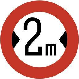 Keywords: traffic ban vehicles over certain width forbidden prohibited sign road sign signage 2m two meters symbol red circle warning caution regulation restricted