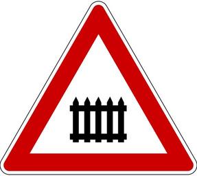 Keywords: traffic sign road sign shield traffic road street sign drive auto warning attention note level crossing barrier train track