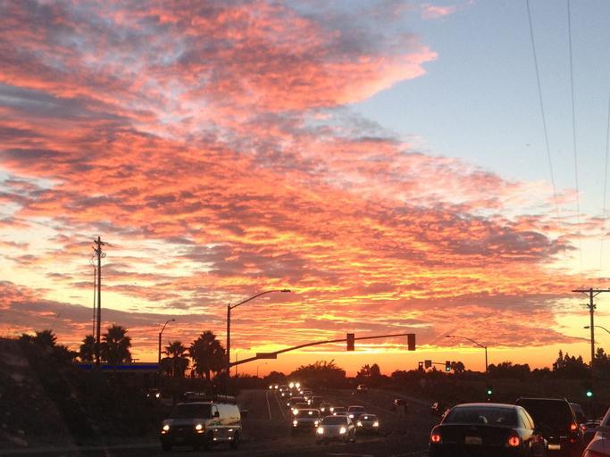 Keywords: traffic street head lights oceanside california sky outside sunset cars lights sun clouds