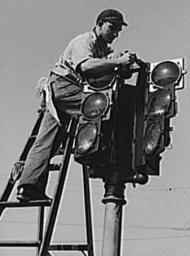 | Keywords: TrafficSignalInstallationUS1940.jpg Installation of a traffic signal in San Diego California http //www loc gov/pictures/item/fsa2000019579/PP/ 1940-12 Creator Russell Lee PD-USGov LOC-image fsa 8c00313 Black and white photographs Black and white photographs of California Black and white photographs of men at work Black and white photographs of the United States in the 1940s December 1940 in the United States December 1940 photographs History of San Diego California Images uploaded by User Nehrams2020 Men at work in California Men wearing hats 1940 in California San Diego in the 1940s Traffic signals in California |