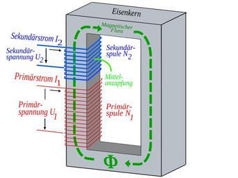 Keywords: Trafo 0.svg en Transformer side view de Schrägansicht eines Transformators mit Mittelanzapfung der Sekundärspule own Herbertweidner1 2009-06-13 Transformer schemas
