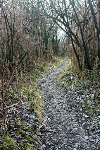 Keywords: trail away path walk water reed thicket reeds scrub bushes grass marsh plant marsh plants devoured