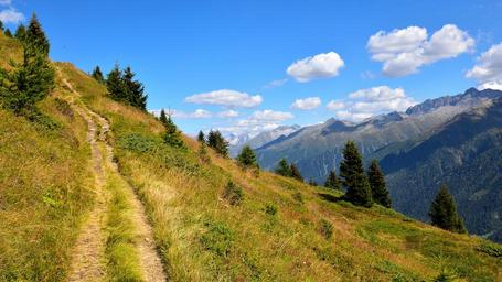 Keywords: trail mountains landscape away view trees alpine nature panorama