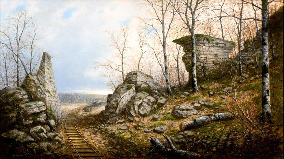 | Keywords: Train Approaching A Pass.jpg Artwork en This painting depicts a train approaching a pass along limestone outcrops on a dry winter day http //www cliftonandersonantiques com/sold/070320_042 html Carl Christian Brenner 1887 in 26 25 46 25 oil canvas Signed at the viewer's lower right Carl C Brenner 1887 Carl Christian Brenner PD-old-100 |