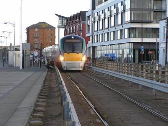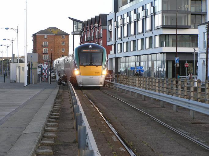 Keywords: Train approaching quays in wexford town from Rosslare apr2012.JPG en Picture of a train approaching the quays in Wexford Town from Rosslare heading to Dublin Taken on evening 6 20pm on Sat 14th Apr 2012 2012-04-14 18 20 55 own Terence wiki cc-zero Passenger trains in Ireland Wexford railway station IE 22000 Class On-street running |