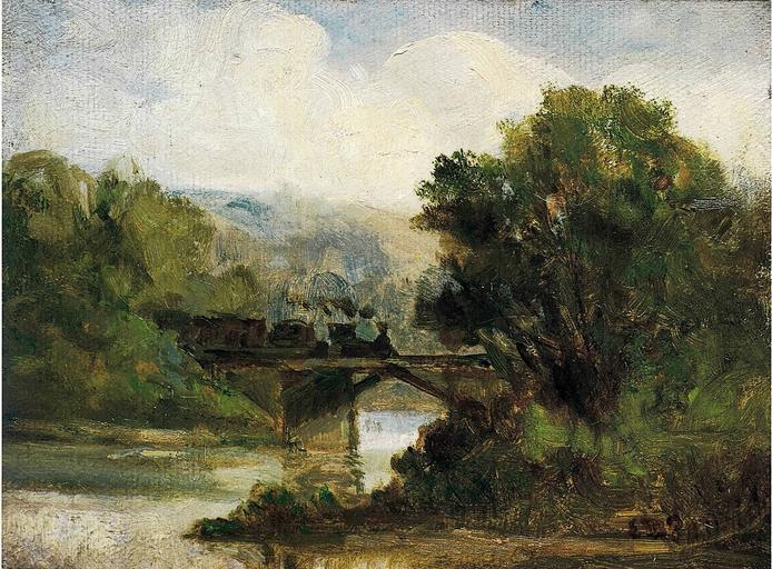 | Keywords: 'Train' by Edward Mitchell Bannister, c. 1875-80.jpg en Train by Edward Mitchell Bannister c 1875-80 oil on canvas Smithsonian American Art Museum Holland Juanita Marie and Corinne Jennings Edward Mitchell Bannister 1828-1901 New York Harry N Abrams 1992 ISBN 0810968118 Creator Edward Mitchell Bannister c 1875-80 PD-old-100 DEFAULTSORT Bannister Edward Mitchell Paintings by Edward Mitchell Bannister in the Smithsonian American Art Museum Railway bridges in the United States Trains on bridges Trains in art |