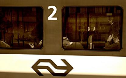 Keywords: train railway passenger window train window people hands reflections rail transportation journey letter logo