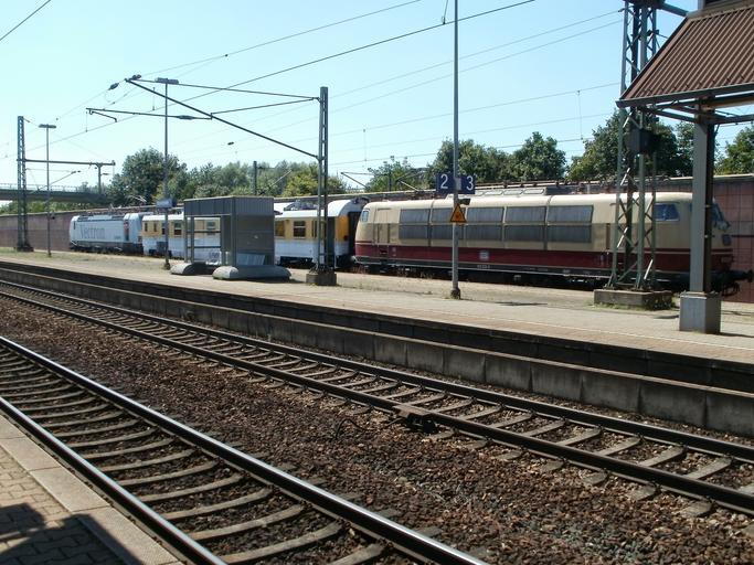 Keywords: train station platform hockenheim railway transport rail train station track journey traffic locomotive carriage wagon cargo urban transit terminal
