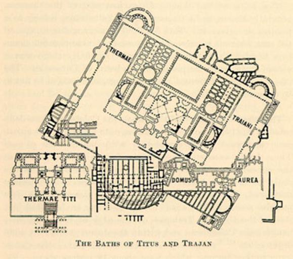 | Keywords: Trajanbathplan.jpg Plan of the Baths of Trajan in Rome http //www vroma org/images/mcmanus_images/trajanbathplan jpg 1911 see http //www vroma org/images/mcmanus_images/index2 html and look for plan of the baths of Trajan Samual B Platner PD-old Plans of the Baths of Titus Rome 6 Plans of the Baths of Traianus Rome 6 Domus Aurea 1911 Samuel Ball Platner |