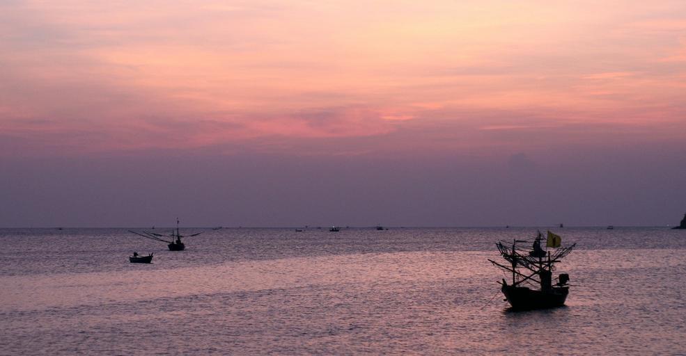 Keywords: tranquility sky beautiful tranquil peace calmness colors surreal boat fishing boat sea ocean water scenery sunrise silhouette dawn south east asia thailand bay cove harbor peaceful serene calm lovely rest romantic