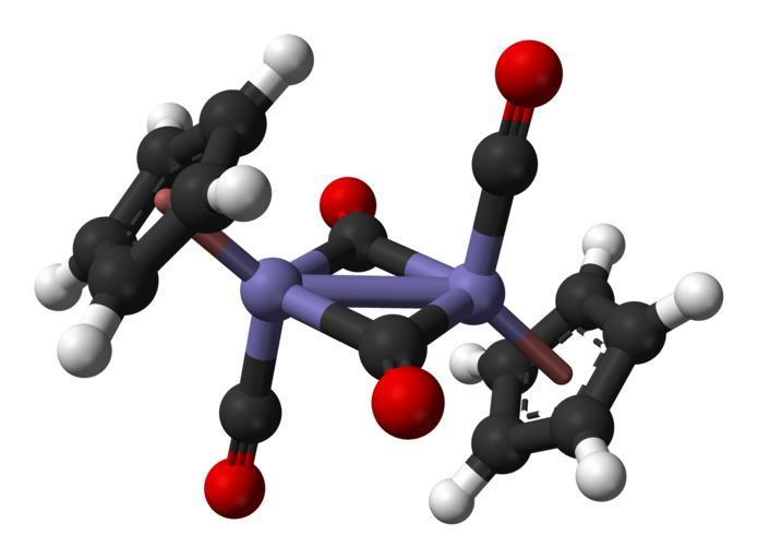 Keywords: Trans-Fp2-from-xtal-2009-3D-balls.png Ball-and-stick model of the trans isomer of the cyclopentadienyliron dicarbonyl dimer C<sub>14</sub>H<sub>10</sub>Fe<sub>2</sub>O<sub>4</sub> AKA Cp<sub>2</sub>Fe<sub>2</sub> CO <sub>4</sub> or Fp<sub>2</sub> Colour code 393939 Carbon C grey-black FFFFFF Hydrogen H white 817BC6 Iron Fe purple-grey-blue F00000 Oxygen O red Structure determined by X-ray crystallography from a private communication to the Cambridge Structural Database by M Nieger CCDC deposition number 715749 refcode CYPFEC04 Model manipulated in http //www crystalmaker com/ CrystalMaker 8 5 Image generated in http //accelrys com/products/discovery-studio/visualization/discovery-studio-visualizer html Accelrys DS Visualizer Own 2012-02-09 Ben Mills Benjah-bmm27 Images by Ben Mills Cyclopentadienyl iron dicarbonyl dimer |