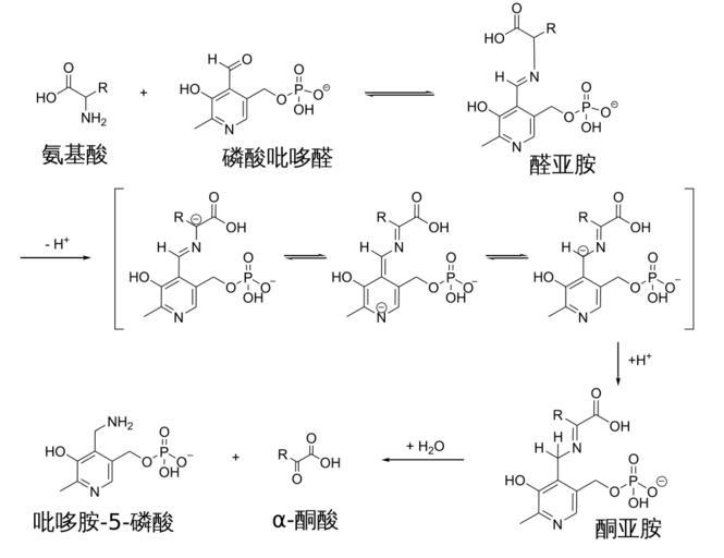 Keywords: Transamination mechanism (zh-cn).svg reaction of an amino acid with pyridoxal-phosphate to a Schiff-base aldimine Transamination between an amino acid an pyridoxal-phosphate Pyridoxalphosphat_aldimin svg Transaminierung_mechanismus_de svg 2011-03-29 05 45 UTC Pyridoxalphosphat_aldimin svg User Alcibiades Transaminierung_mechanismus_de svg User Alcibiades derivative work Shakiestone <span class signature-talk >talk</span> translation Transaminierung_mechanismus_de svg </nowiki> Uploaded with derivativeFX Coenzymes Organophosphates Acid-base reactions Organic reactions |