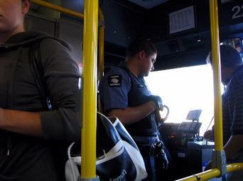 Keywords: TransLink Insecurity.jpg en Transit security officer aboard a Vancouver bus in order to check fares; bus drivers are often in the habit of allowing a free ride to people who do not pay the fare which management seeks to discourage People who do not have valid fare face a fine of 173 and/or could be removed from the transit system Vancouver BC Canada own Name invalid 2008-07-13 Vancouver BC Canada 2008 in Vancouver Transport workers from Canada |