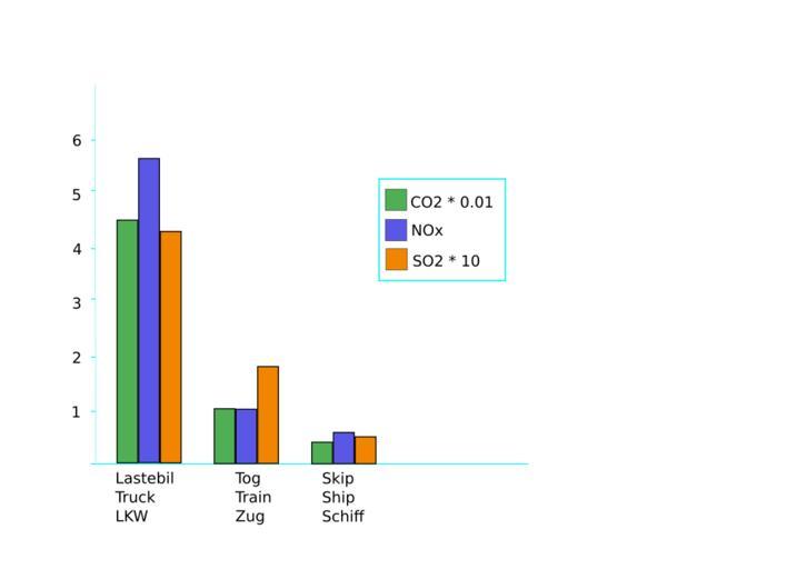 | Keywords: Transportation pollution.svg Bar chart showing CO2 0 01 NOX and SO2 10 pollution in grams per tonne-kilometer of cargo from truck transport train transport and ship transportation Data taken from OECD The Environmental Effects of Freight http //www oecd org/dataoecd/14/3/2386636 pdf Pollution Transport Sulfur dioxide Railway Statistics 2005-12-04 own assumed Bertil~commonswiki | ||||